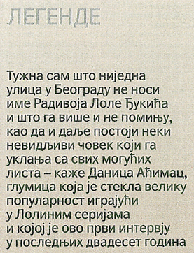 Лоле Ђукића. Због ње је Лола пензионисан у 53. години, и то из политичких